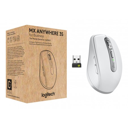 Logitech MX Anywhere 3S for Business, Droitier, Laser, RF sans fil + Bluetooth, 8000 DPI, Blanc