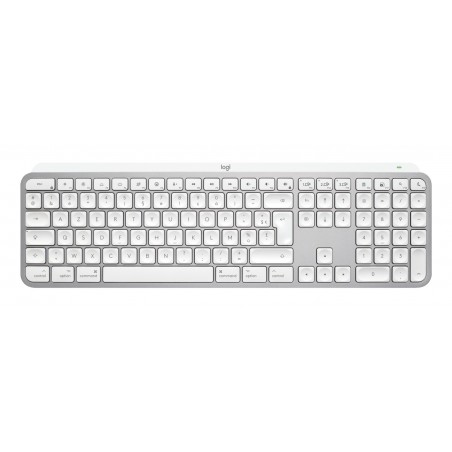 Logitech Master MX Keys S for Mac, Sans fil, RF sans fil + Bluetooth, Commutateur de touche « ciseaux », AZERTY, LED, Aluminium, Blanc